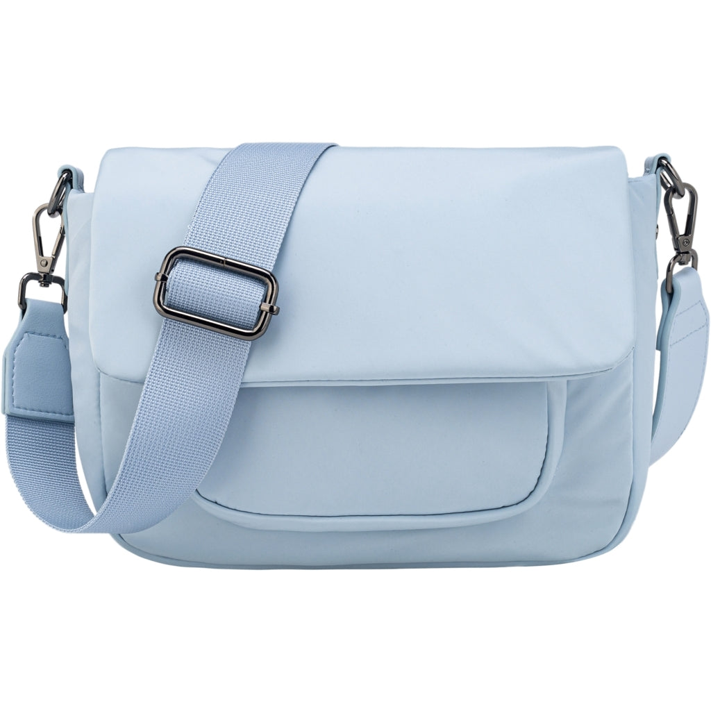 Crossbody bag with magnetic closure and adjustable strap. The bag has an outer front pocket and one large compartment with an inner pocket. H17 cm x W21 cm x D7 cm
