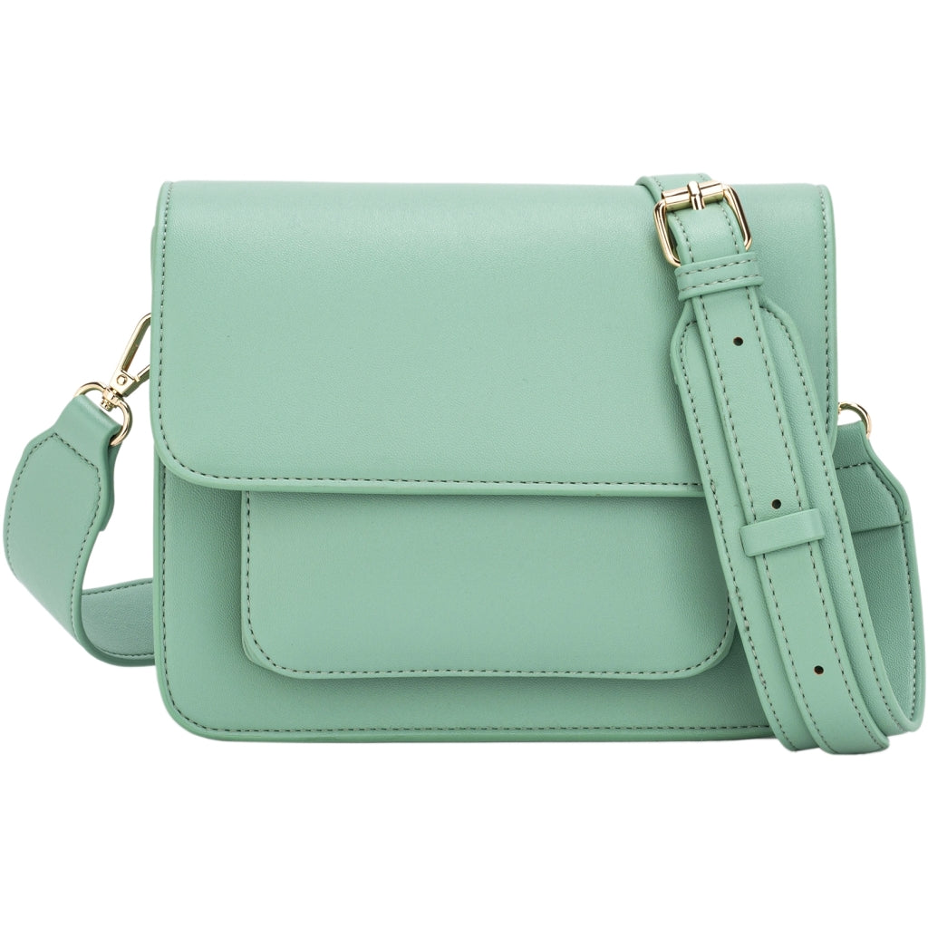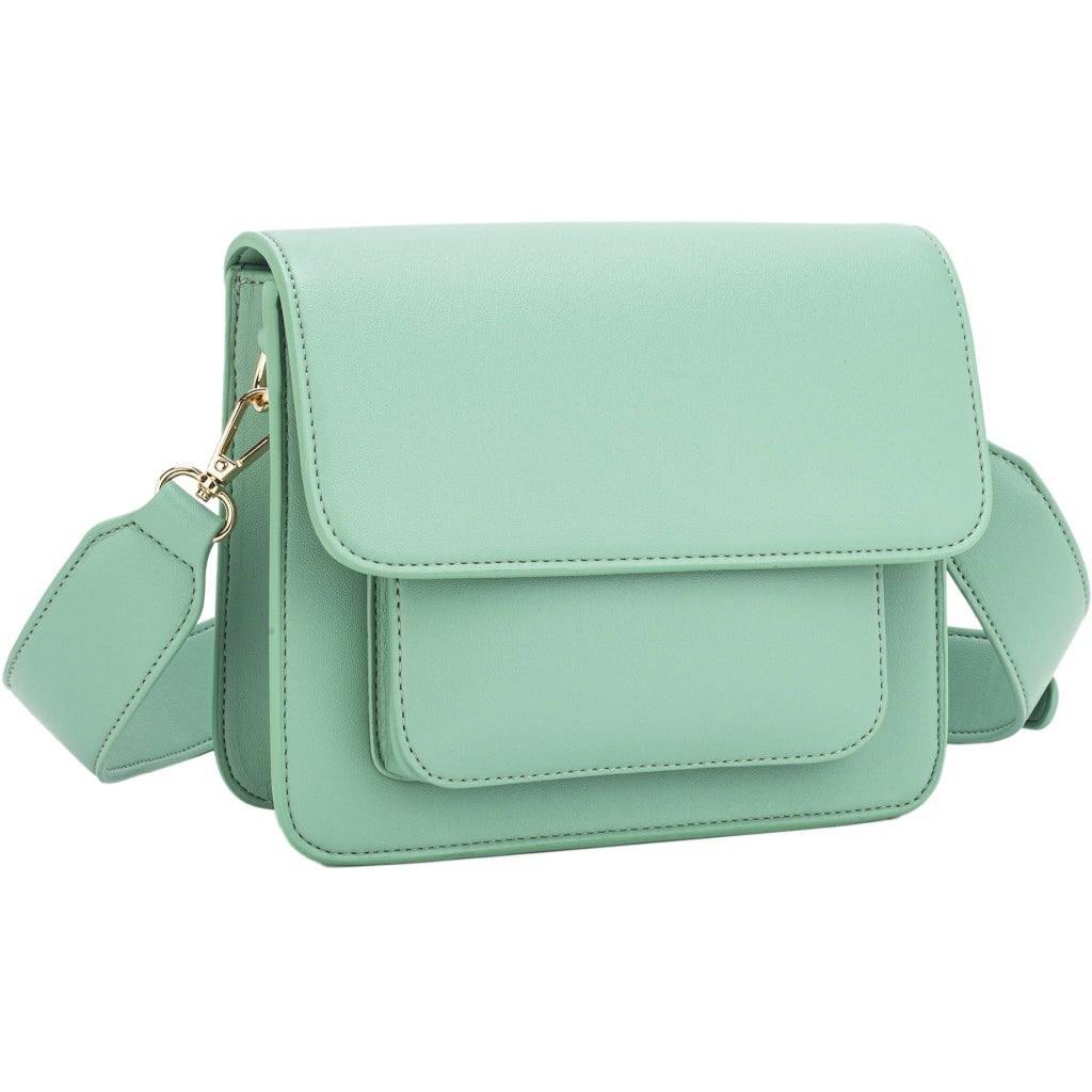 Crossbody bag with magnetic closure and adjustable strap. The bag has an outer front pocket and one large compartment with an inner pocket. H17 cm x W21 cm x D7 cm