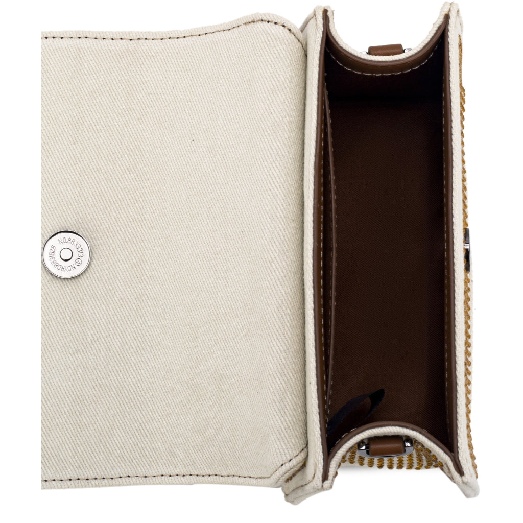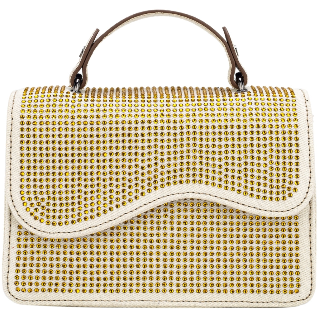 Mini bag with wavy design details. The bag has magnetic closure and contains one compartment with an inner zip pocket. The bag has a short handle and an adjustable crossbody strap. H13,5 cm x W19,5cm x D9cm