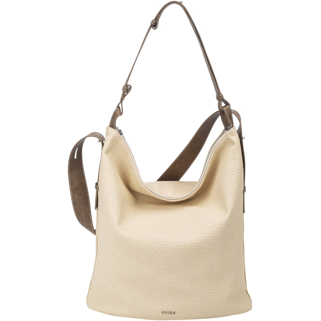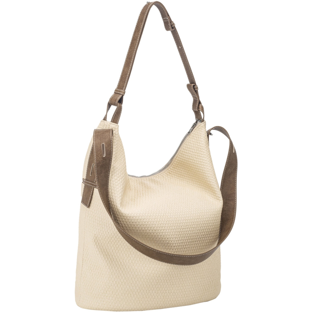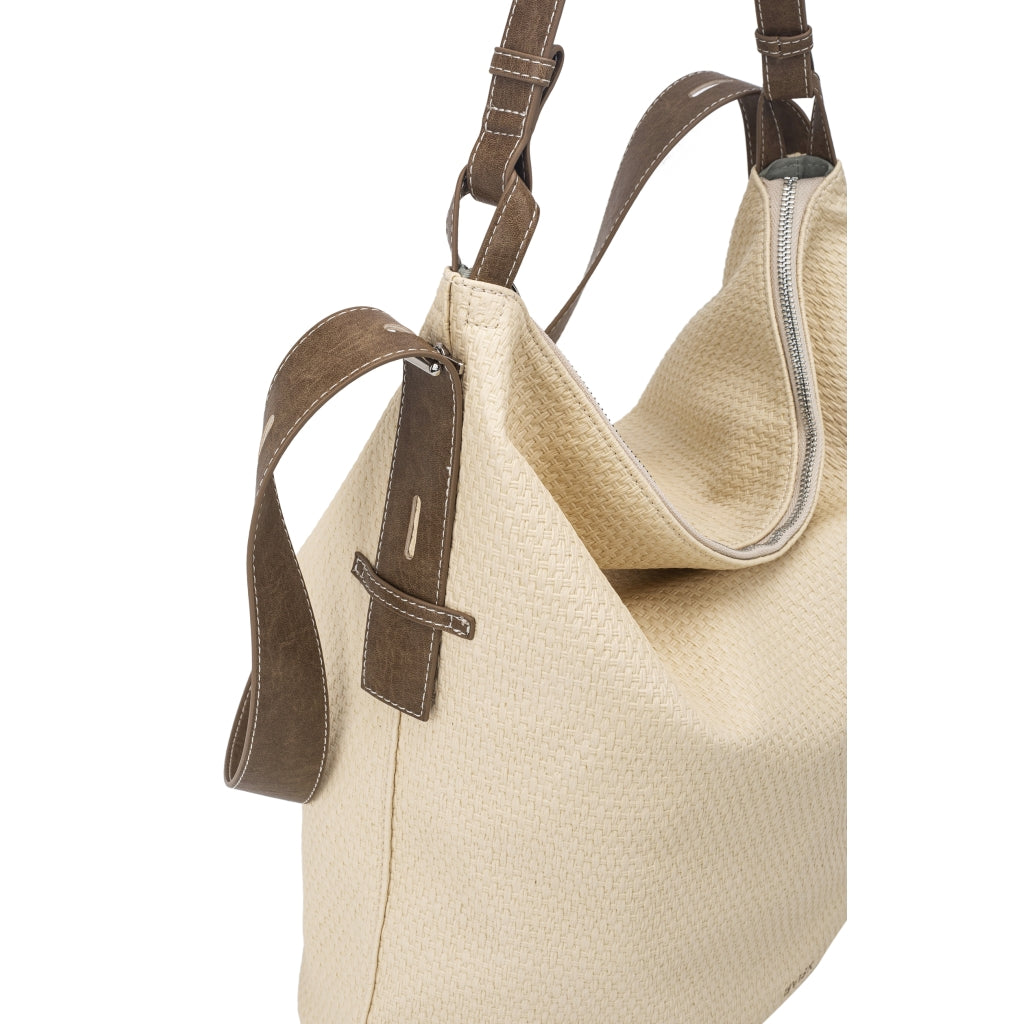 Crossbody bag with zip closure, adjustable shoulder strap and a longer attachable adjustable strap. The bag has one large compartment with two open inner pockets and one inner zip pocket.