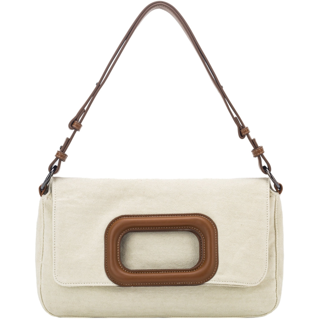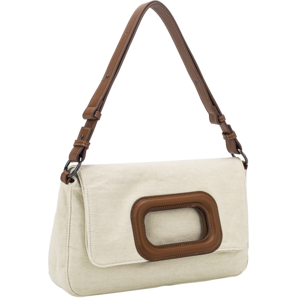 Multifunctional bag with adjustable strap, inner zipper pocket, two flaps with magnetic snap buttons to close the bag and integrated buckle handles. The bag can be worn on the shoulder, as a handbag, as crossbody and as a clutch. H15 cm x W29 cm x D12 cm