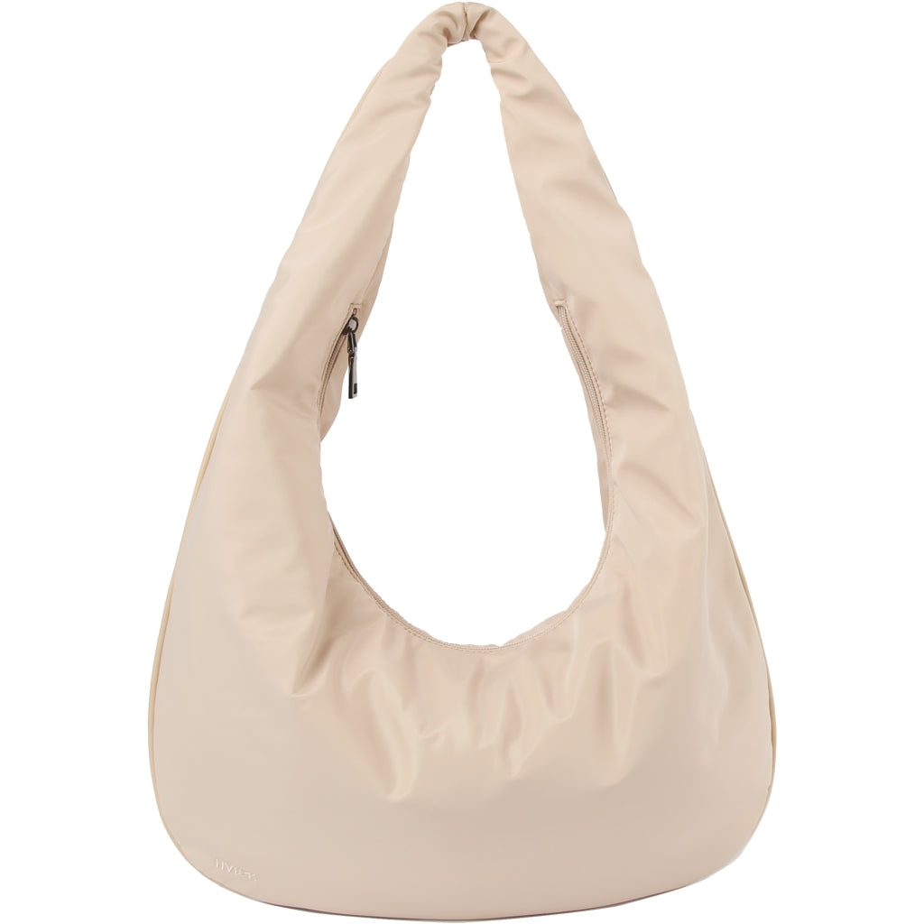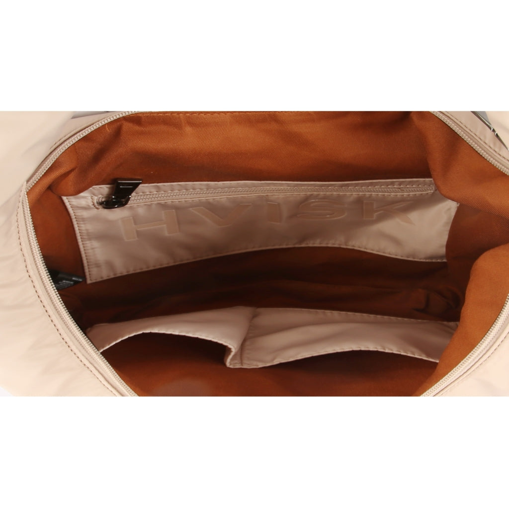 Tote bag with one big compartment. The bag features one outer pocket with zipper, two open inner pockets and one inner pocket with zipper. H48 cm x W49 cm x D1 cm