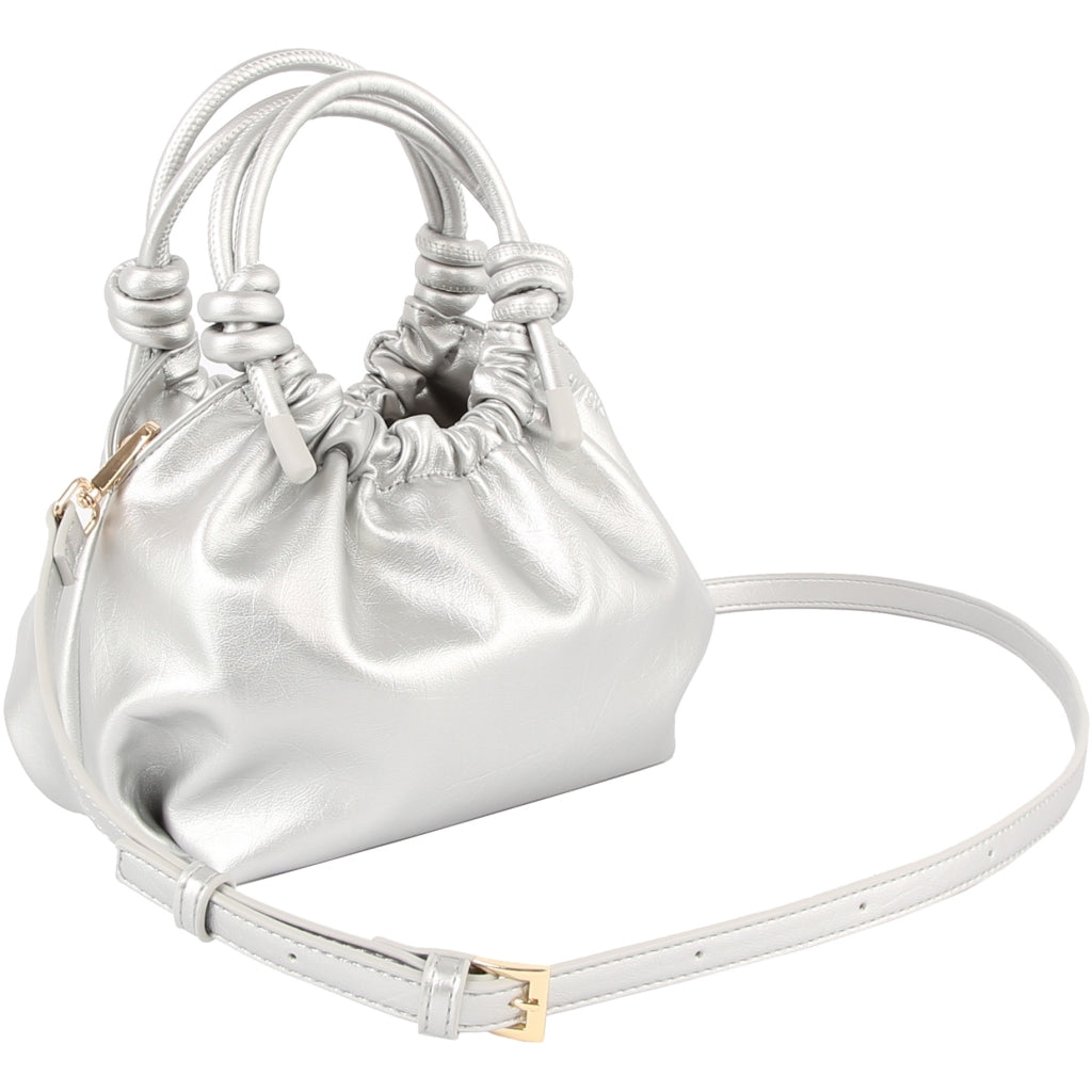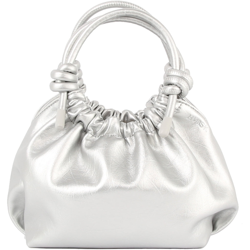Mini handle bag with magnetic closure and knotted detailing on the handles. The bag has one compartment with one zipper-closed inner pocket. H17 cm x W19 cm x D12,5 cm