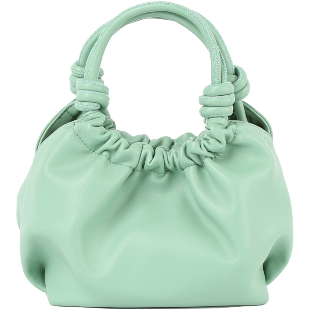 Mini handle bag with magnetic closure and knotted detailing on the handles. The bag has one compartment with one zipper-closed inner pocket. H17 cm x W19 cm x D12,5 cm