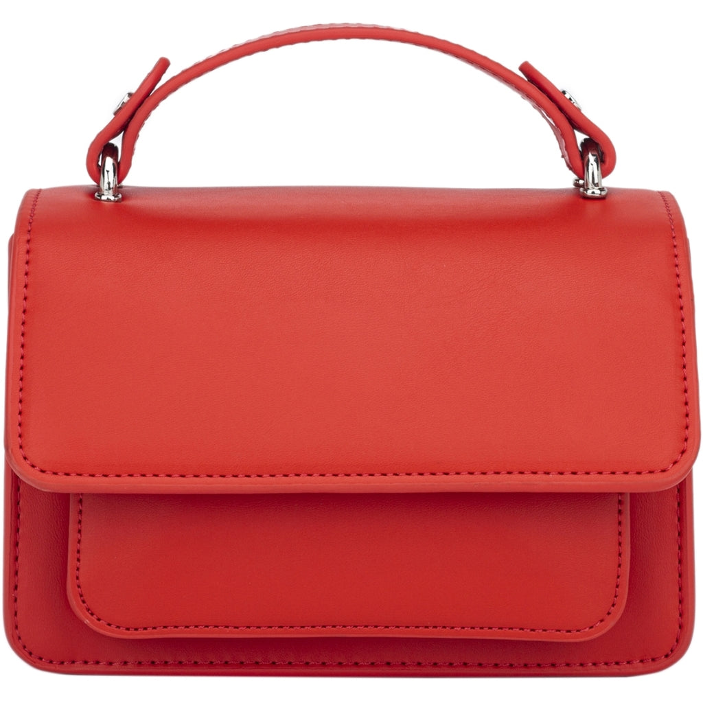 Mini bag with short handle and attachable adjustable crossbody strap. The bag has one main compartment along with a front pocket.